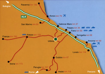 *** The closest airport is in Ancona. There are several connections every day from the airport of Ancona and those of Roma Fiumicino, Milano Malpensa, Munich, Francoforte. It is possible to fly to Bologna* Airport, and then take the train from Bologna to Pesaro (several connections, time required about 1 hour and 40 minutes).